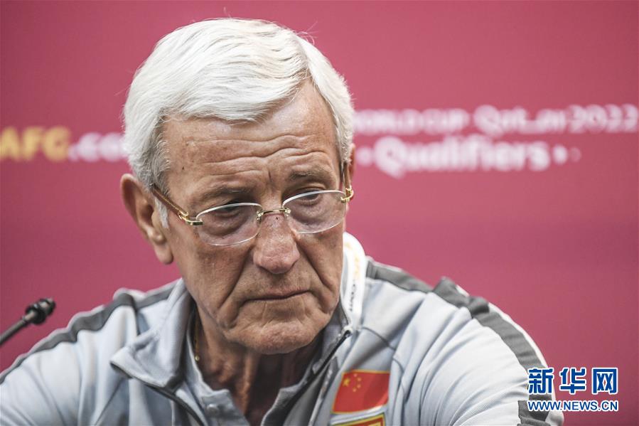 11月14日,里皮在賽后新聞發布會上。 當日,在阿聯酋迪拜舉行的2022年卡塔爾世界杯預選賽亞洲區四十強賽中,中國隊以1比2不敵敘利亞隊。中國隊主教練里皮在賽后新聞發布會上宣布辭去主教練職務。新華社記者潘昱龍攝