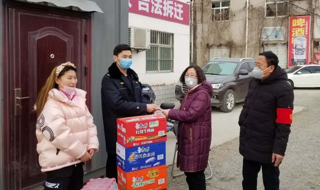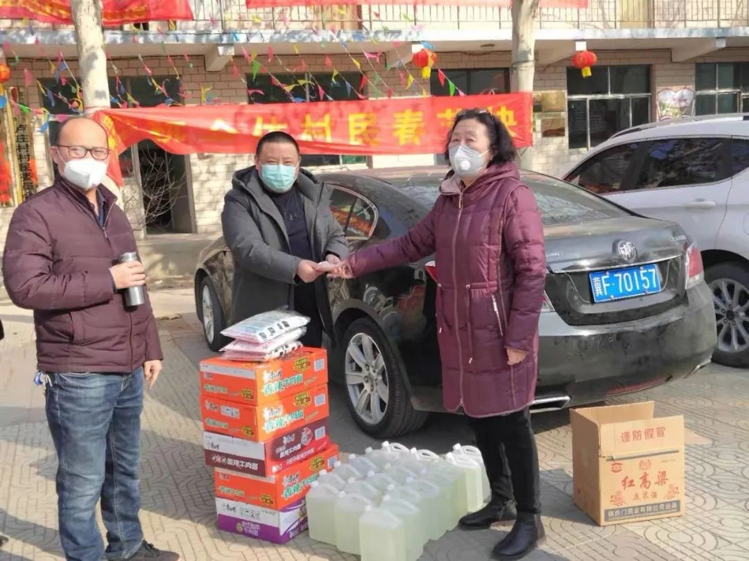 防疫工作開展之初,很多戰(zhàn)斗在一線的村干部沒有口罩、防護服、手套,只帶著自己的防寒棉口罩,盧書祥看在眼里,急在心上。他發(fā)動家人帶頭捐款、捐物,村中預(yù)備黨員及黨員干部也紛紛為響應(yīng);想辦法多方聯(lián)系防疫物資,得到鄉(xiāng)政府以及榮聯(lián)集團的大力支持,先后為防疫工作人員送來棉襖、84消毒液、方便面、口罩等,為一線防疫人員提供了堅實的后勤保障。