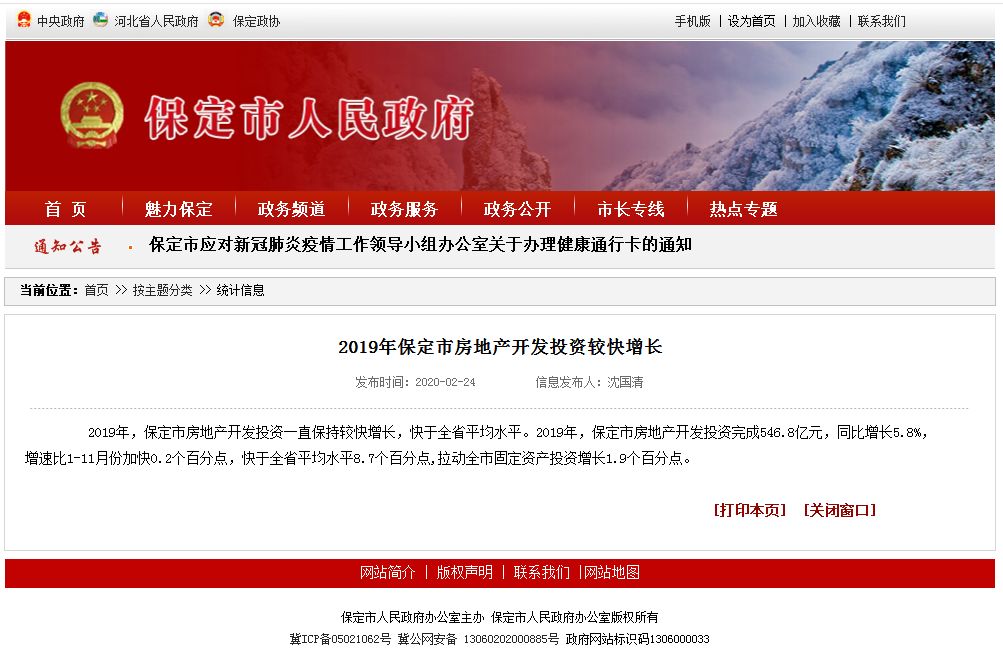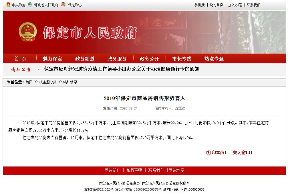2月24日,保定市人民政府網站公布了2019年保定市商品房銷售和房地產開發投資情況,去年保定市商品房銷售面積為453.5萬平方米,房地產開發投資一直保持較快增長,快于全省平均水平。