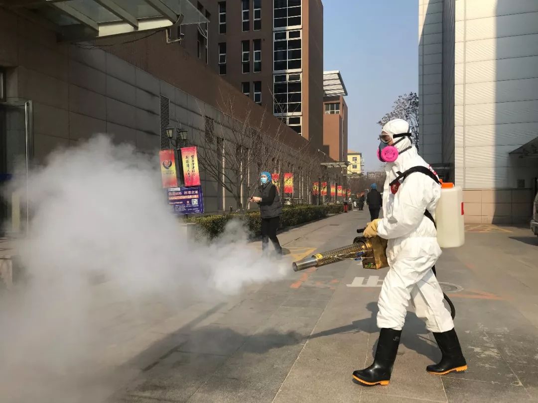 “到達工作地點后,我們一般先對道路和人員常聚集的公共場所進行消殺,然后再進入居民樓操作。”2月24日,剛給市電視臺辦公區消完毒后,張志浩的護目鏡已是一層水霧。他邊說著,邊放下噴灑桶和重重的噴槍,喘了喘氣,匆匆喝了幾口水。“沒時間歇太久,還有家屬院居民樓需要消殺。”轉身向前,他白色防護服背后“榮聯科技應急隊同心戰疫眾志成城”兩行字清晰醒目。