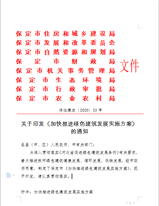 4.做好綠色建筑專項規劃編制。按照《條例》及河北省《綠色建筑專項規劃編制導則》要求,綠色建筑專項規劃應確定新建民用建筑的綠色建筑等級及布局要求,包括發展目標、重點發展區域、裝配式建筑、超低能耗建筑要求和既有民用建筑綠色改造等內容,明確裝配式建筑、超低能耗建筑和綠色建材應用的比例。2020年6月之前編制完成保定市《綠色建筑專項規劃》,各縣(市、區)于2020年12月之前完成本轄區的《綠色建筑專項規劃》。