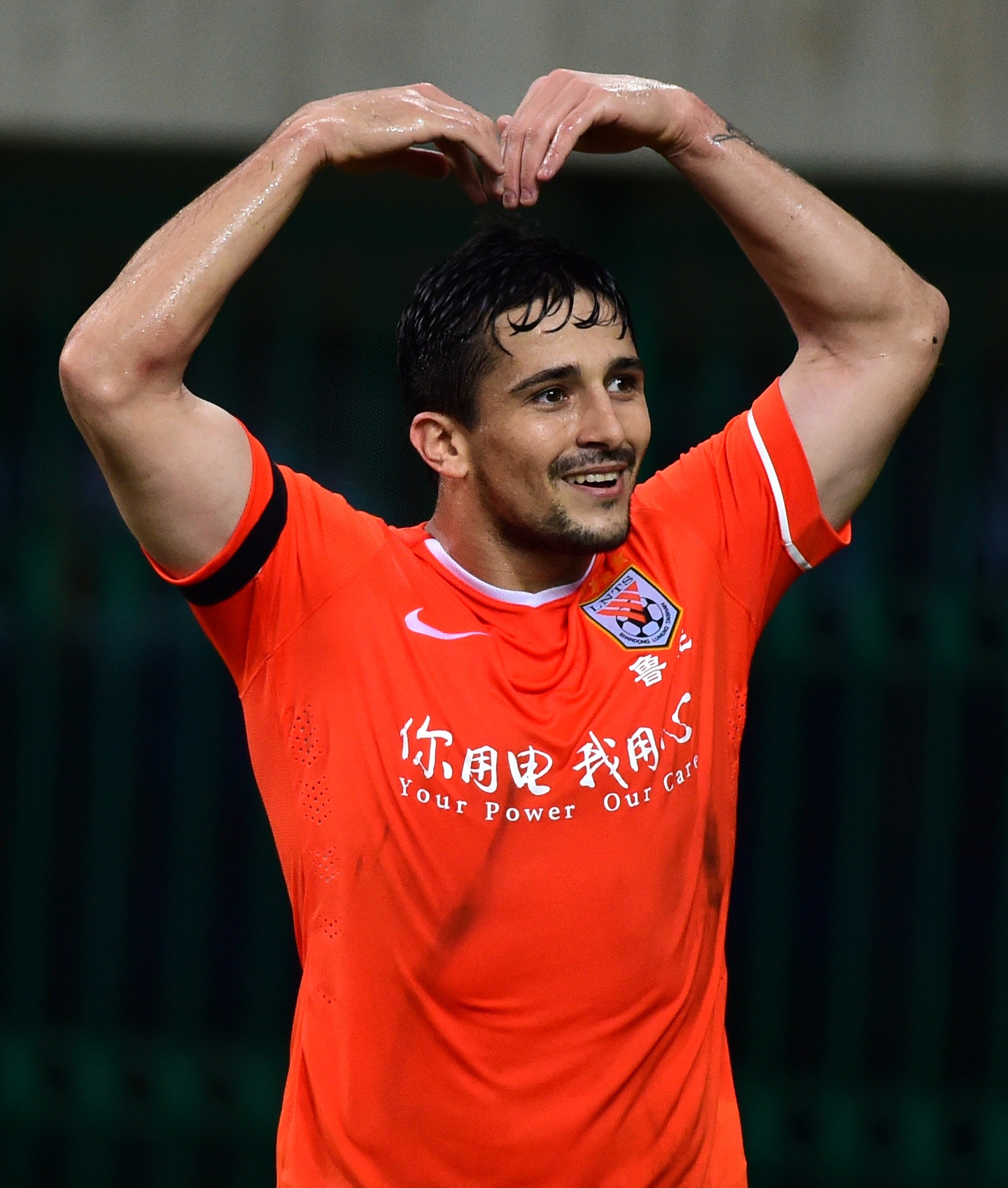 中國足協4月29日公布新一期的27人男足國家隊集訓名單,球隊將在5月10日至27日在上海組織集訓,備戰2022年卡塔爾世界杯亞洲區預選賽四十強賽。廣州恒大隊前鋒洛國富(原名阿洛伊西奧)首次進入大名單,成為第三位入選中國隊的歸化球員。現年31歲的洛國富(原名阿洛伊西奧)于2014年從巴西圣保羅隊加盟中超聯賽,曾先后效力于山東魯能、河北華夏幸福以及中甲梅縣鐵漢等多家俱樂部,并在2015年以22粒進球收獲中超金靴。2019年11月,洛國富在個人社交媒體表示,自己將加盟廣州恒大,開啟新的挑戰。圖為2015年7月24日,在2015賽季中國足球超級聯賽第21輪山東魯能泰山隊客場對陣天津泰達權健隊的比賽中,山東魯能泰山隊球員阿洛伊西奧慶祝進球。新華社記者 張晨霖 攝