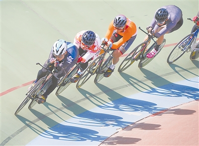 5月25日,河北男子場地自行車隊隊員羅依倫(左一)和隊友在訓(xùn)練中。近日,河北省自行車隊在做好疫情防控的前提下,在秦皇島訓(xùn)練基地恢復(fù)了自行車隊的日常訓(xùn)練,積極備戰(zhàn)2021年全運會。 楊世堯 攝