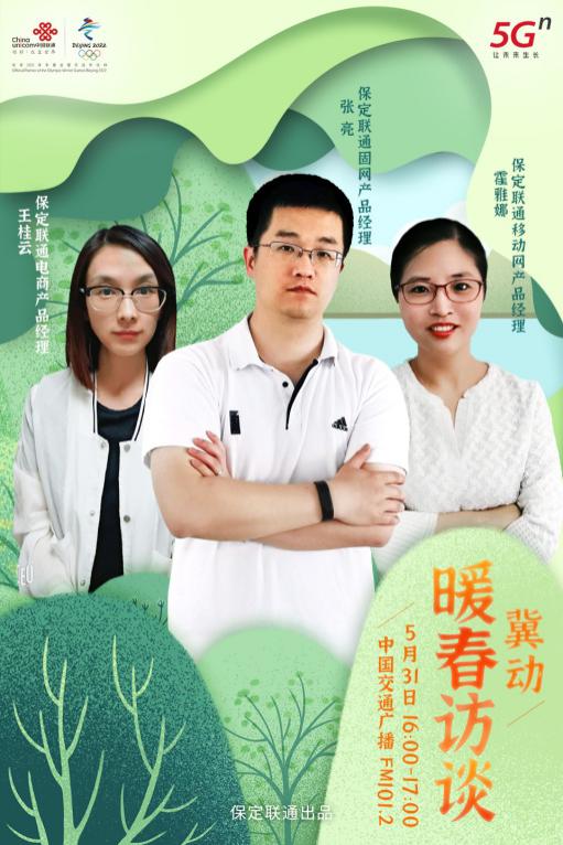 5月31日保定聯通多位產品經理做客中國交通廣播FM101.2《冀動 暖春訪談》節目,介紹了保定聯通為疫情防控注入的科技力量、加速復工復產等各項技術措施,同時就5G智能、5G產品資費、終端、千兆智能組網、手機營業廳等多方面老百姓關心的話題進行了講解。