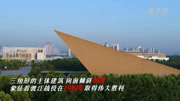 三角形的主體建筑,向前傾斜49度,象征著渡江戰役在1949年取得偉大勝利。