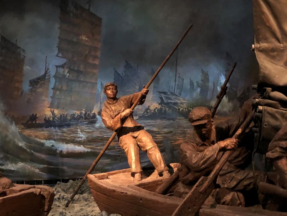 △馬毛姐送軍過大江的雕塑陳列于渡江紀念館內(總臺央視記者許永松拍攝)