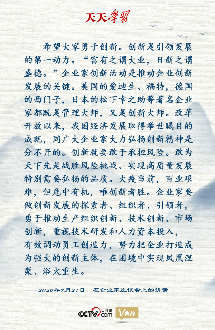 在講話當中,總書記多次談到“創(chuàng)新”一詞。而創(chuàng)新,也正是國民經(jīng)濟賴以不斷發(fā)展的內(nèi)生動力。上個月,總書記在主持召開企業(yè)家座談會時也特別強調(diào)了創(chuàng)新對于企業(yè)發(fā)展的關(guān)鍵作用,并引用了一則典故來闡釋創(chuàng)新的重要性。他說——