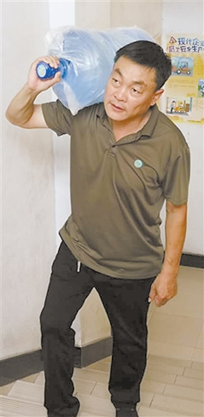 1999年,寶水公司剛剛成立時,送水人手不夠,孫衛東便主動擔起送水的工作。每桶桶裝水的重量接近40斤,別說肩扛,從車上提下來都非常費勁。“一開始扛不住,幾乎是抱著水桶上5樓,后來慢慢有了力氣,但扛著桶裝水上樓還是很難邁開步子,每上一個臺階,就感覺到肩膀上有一股力向下壓,一桶水送上樓,腿腳都是軟的。”最忙的時候,他一天甚至要搬運100桶,差不多2噸水送到居民家里。這樣的兼職,一直持續到公司送水工作步入正軌。