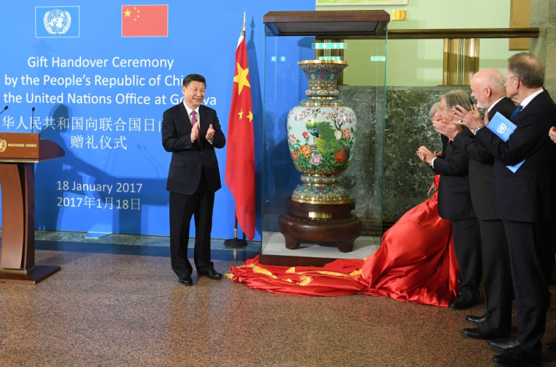 2017年1月18日,習近平主席出席中國向聯合國日內瓦總部贈禮儀式。