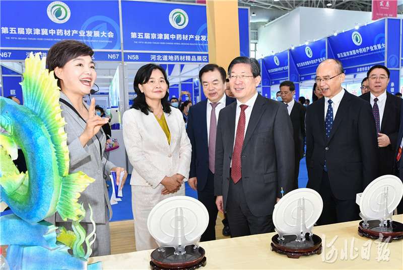 9月27日上午,河北省中醫藥傳承創新發展大會在有“藥都”之稱的保定市安國市開幕。會后,與會領導與嘉賓共同參觀了中醫藥產業成果展示。 河北日報記者趙威攝