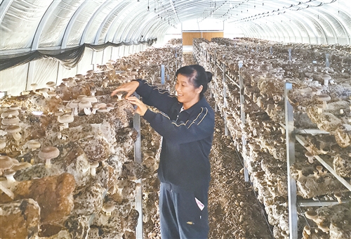 菇農在甘肅隴西縣菜子鎮二十鋪村食用菌生產示范基地采摘香菇。經濟日報·中國經濟網記者 薛志偉攝