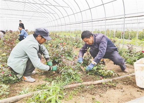 甘肅定西市渭源縣上灣鎮南谷玫瑰園內,工人正在為玫瑰花除草。 經濟日報·中國經濟網記者 薛志偉攝