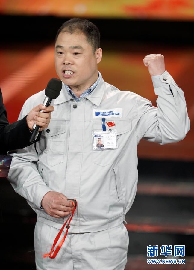 江蘇省無錫微研股份有限公司高級技師陳亮在“最美職工”發布儀式上(2019年4月21日攝)。新華社記者才揚攝