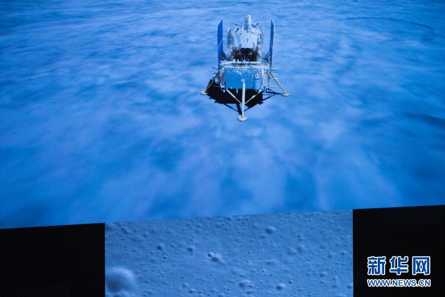 2020年12月1日23時11分,嫦娥五號探測器成功著陸在月球正面西經51.8度、北緯43.1度附近的預選著陸區,并傳回著陸影像圖。這是在北京航天飛行控制中心拍攝的嫦娥五號探測器落月瞬間。新華社記者 金立旺 攝