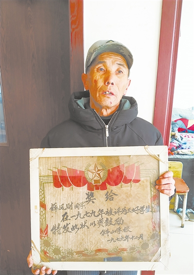 “我爹沒上過學(xué),以前總希望我們能上學(xué)走出大山,可惜他37歲就去世了,那時(shí)候我們兄弟四個(gè)還都在上學(xué)。大哥當(dāng)年上了師范,我在上初中。因?yàn)楦F,為了供大哥上學(xué),我們家里做了決定——兄弟三個(gè)都輟學(xué)。”薛二小手里捧著一個(gè)玻璃框,里面鑲著一張獎(jiǎng)狀,那是1979年上初中時(shí)他的“三好學(xué)生”獎(jiǎng)狀。
