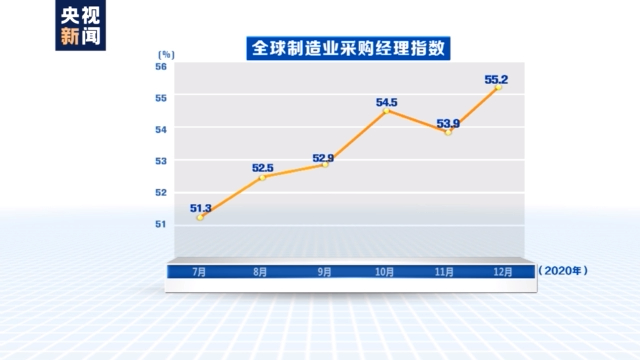 2020年12月份全球制造業采購經理指數為55.2%,較上月上升1.3個百分點,已連續6個月保持在50%以上。
