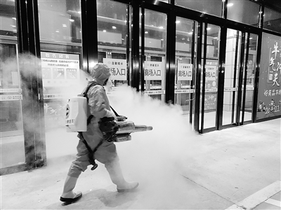 從1月1日至10日,藍(lán)天救援隊(duì)又開啟了新一輪的疫情防控消殺行動(dòng)。幾天來,消殺隔離點(diǎn)3個(gè)、學(xué)校4個(gè)、酒店1個(gè)、商場(chǎng)超市2個(gè)、小區(qū)9個(gè),消殺面積36萬平方米,出動(dòng)130余人次,每次消殺時(shí)間約兩小時(shí)。冬季雖寒冷,但每次志愿者們脫下厚重的防護(hù)服后全身已被汗水浸濕。圖為志愿者在某超市做消殺。 記者 陳曦 黃曦華 攝