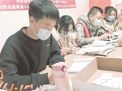 記者看到,十幾名志愿者圍坐在一起,寫著各自手中的小卡片。保定第十三中學的徐一粟同學正在抄錄著小區出入證信息,他說:“媽媽讓我來做志愿者,現在抄了200多張了,沒想到我們這個社區有10個小區,我盡量寫快一點,把字寫清楚。”