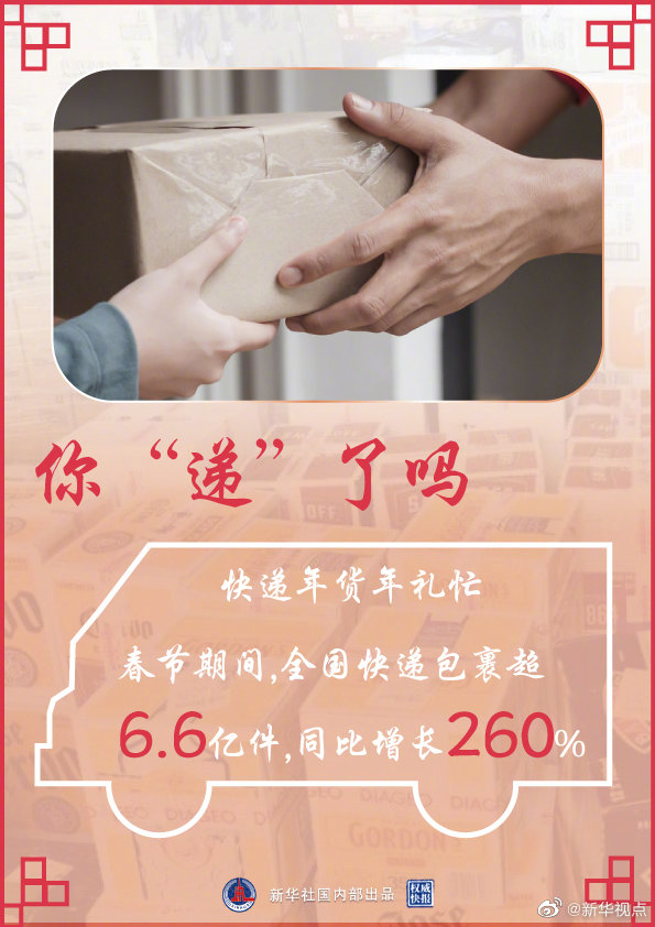 國家郵政局快遞大數(shù)據(jù)平臺監(jiān)測顯示,春節(jié)期間(2月11日至17日),全國郵政快遞業(yè)累計(jì)攬收和投遞快遞包裹6.6億件,同比增長260%。