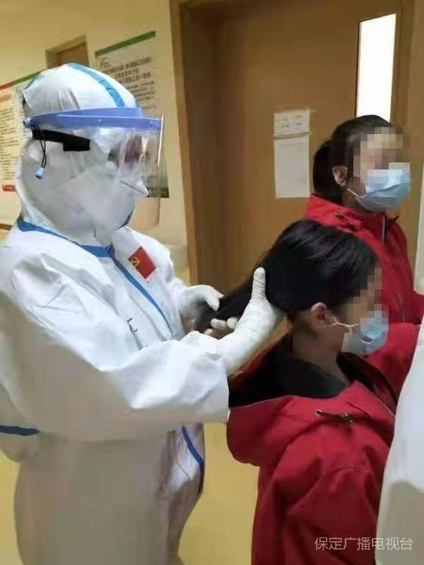 劉蘭是河大附院第三批援石醫療隊隊員,從1月20日抵達石家莊至今已經是第34天了。在石家莊市第五醫院隔離病區,她和小患者鑫鑫(化名)結下了深厚友誼。剛開始鑫鑫并不愛說話,總是一個人坐在病床上擺弄著洋娃娃,從不提任何要求。劉蘭知道鑫鑫在想念家人,就抽空陪她說話,給她講故事,一天鑫鑫怯怯地問:“阿姨,我能剪剪頭發嗎?”劉蘭抱了抱她爽快地說:“咱們先洗洗頭發,然后再剪”,劉蘭像媽媽一樣,幫鑫鑫洗頭發、剪頭發、扎小辮子,鑫鑫臉上露出開心的笑容。