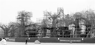 本報訊(記者宋文雅)近日,細心的市民注意到,植物園南門口搭起了腳手架,將高高的仿國槐樹大門圍了起來,正在進行施工作業。