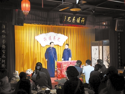 “同樣是夜經濟,我們走的是文化路線。”曲藝社負責人孟龍稱,每次演出都滿坑滿谷(意思是滿座),特別受歡迎。