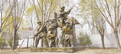在公園西側(cè),一座消防戰(zhàn)士滅火救援的雕塑吸引了記者。