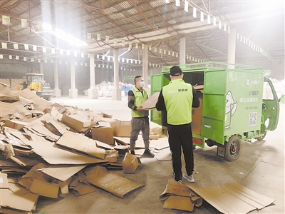 短短一個半小時的采訪,張彥濤已經收了100多公斤。紙板整齊擺放在密封的電動三輪車車廂內,塑料瓶也是按標有PET和無標的分開。一把掃帚一個簸箕隨身用,地面干干凈凈邊收邊清。“現在知道我們的人越來越多,例如小區、商超和學校,除了固定時間固定地點,還有不少市民網上預約和電話預約。”