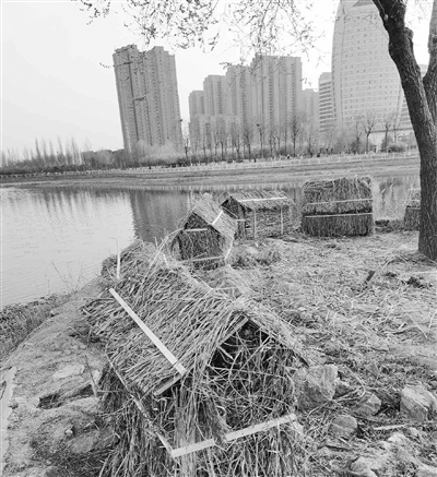 趙響離著老遠認真觀察這些“小房子”,發現表面覆蓋稻草的“小房子”,隱約瞧見里面的板材,“房內”也鋪有稻草?!斑@些‘小房子’估計就是人工鳥窩,這確實是留住這些水鳥兒的好辦法?!壁w響說,水鳥兒在城市里生活不易,它們很難找到特別適合的搭窩材料。沒有鳥窩,鳥兒產蛋繁殖就會受影響,這些人工鳥窩恰恰解決了水鳥兒搭窩的難題,讓它們能在城市里安心生活。