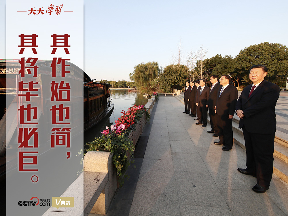 此行中,習(xí)近平總書記引用了“其作始也簡(jiǎn),其將畢也必巨”這句古語(yǔ)。他站在歷史和時(shí)代的高度,回顧中國(guó)共產(chǎn)黨從小到大、從弱到強(qiáng)的光輝歷程,解讀黨的初心,強(qiáng)調(diào)學(xué)習(xí)革命先輩的崇高精神,并號(hào)召全黨同志不忘初心、牢記使命、永遠(yuǎn)奮斗。習(xí)近平總書記的講話激勵(lì)全黨全軍全國(guó)人民進(jìn)一步增強(qiáng)責(zé)任感和使命感,以永不懈怠的精神狀態(tài)和一往無前的奮斗姿態(tài),繼續(xù)朝著實(shí)現(xiàn)中華民族偉大復(fù)興的宏偉目標(biāo)前進(jìn)。