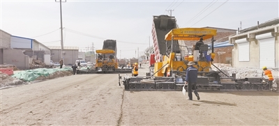 隆興路上,大型攤鋪機(jī)緩緩西行。邸志永 攝