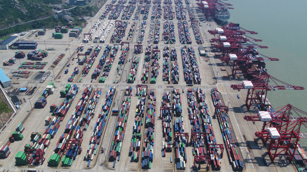 上海洋山港集裝箱碼頭(無人機照片)。新華社記者 丁汀 攝