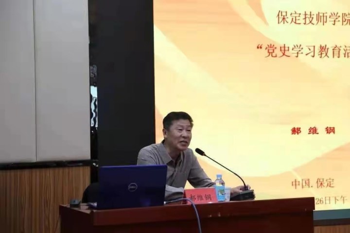 保定日?qǐng)?bào)訊 為深入學(xué)習(xí)領(lǐng)會(huì)習(xí)近平總書(shū)記2月20日在黨史學(xué)習(xí)教育動(dòng)員大會(huì)上的重要講話精神,引導(dǎo)全院師生學(xué)史明理、學(xué)史增信、學(xué)史崇德、學(xué)史力行,4月26日,保定技師學(xué)院特邀共青團(tuán)天津市團(tuán)校、天津青年職業(yè)學(xué)院原黨委書(shū)記(研究員)、中國(guó)現(xiàn)代史研究會(huì)理事、天津黨史研究會(huì)理事、天津市高職高專(zhuān)精品課評(píng)估專(zhuān)家郝維鋼作了題為“學(xué)史明理、學(xué)史增信、學(xué)史崇德、學(xué)史力行”的黨史教育活動(dòng)提升培訓(xùn)講座。講座由保定技師學(xué)院黨委副書(shū)記劉濟(jì)新主持,學(xué)院全體黨員、干部和學(xué)生代表參加了講座。