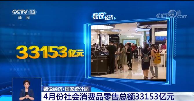 數據二:33153億元。4月份,社會消費品零售總額33153億元,同比增長17.7%,兩年平均增長4.3%;環比增長0.32%。