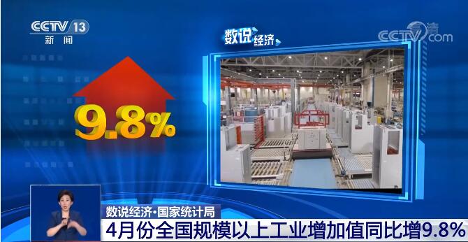 數據三:9.8%。4月份,全國規模以上工業增加值同比增長9.8%;兩年平均增長6.8%,比3月份加快0.6個百分點,裝備制造業和高技術制造業增長較快。