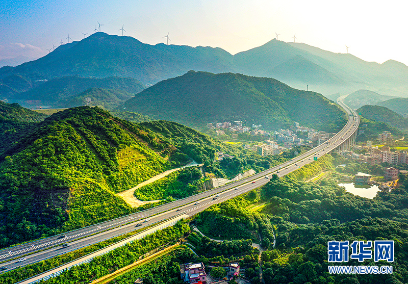 2018年9月,云湛高速全線通車,319公里的高速騰空而起。云湛高速貫通粵西云浮、陽江、茂名、湛江四市。它的建成,為推動粵西地區經濟社會發展進入快車道“換檔提速”。圖為云湛高速沿線。新華網發