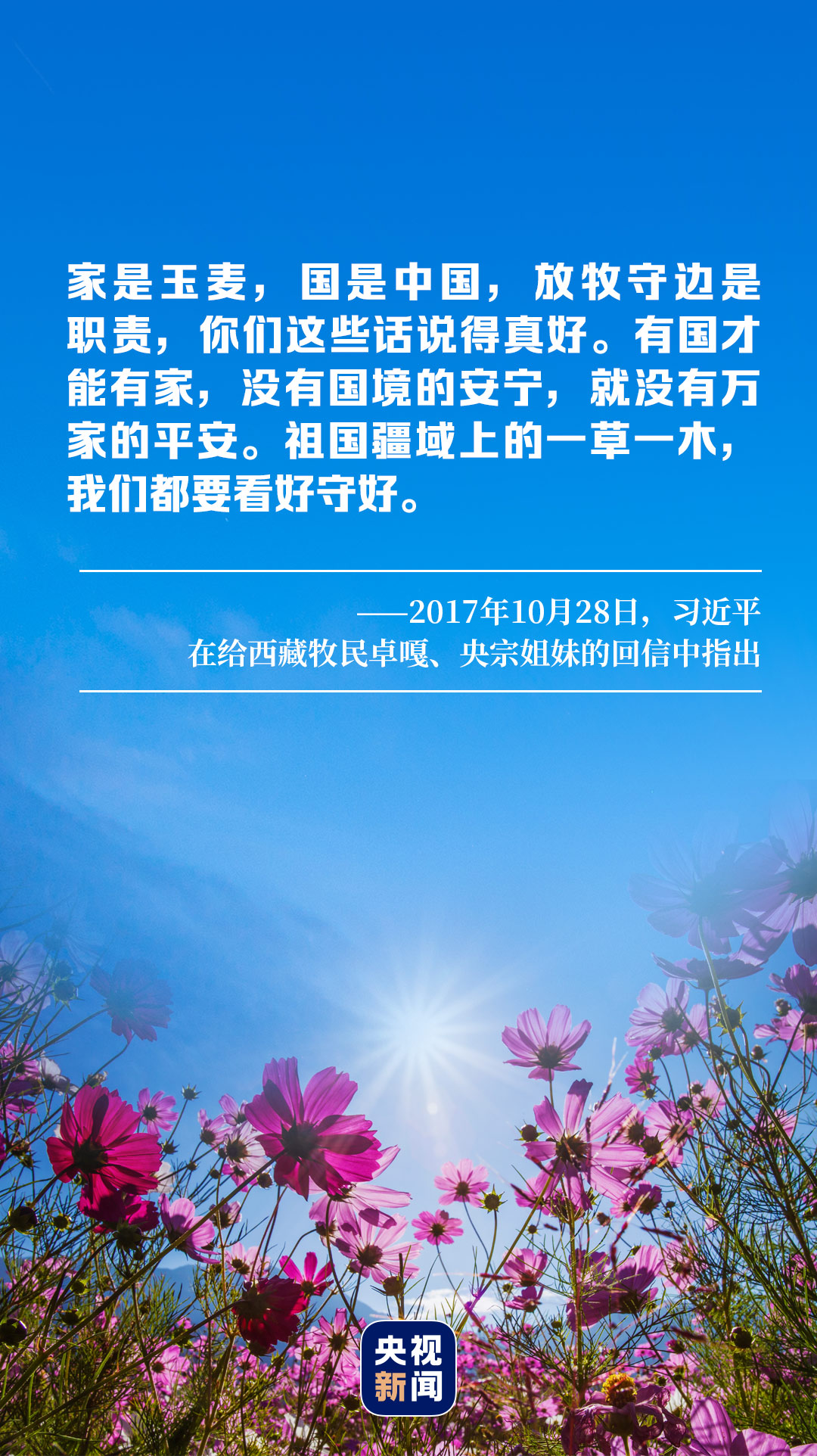 習近平勉勵她們,“繼續傳承愛國守邊的精神,帶動更多牧民群眾像格桑花一樣扎根在雪域邊陲,做神圣國土的守護者、幸福家園的建設者”。