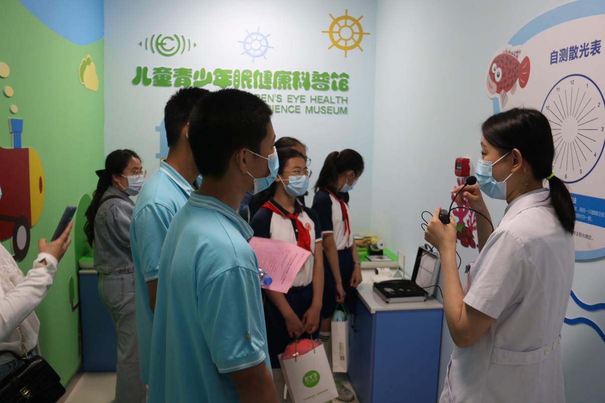 啟動儀式結(jié)束后,視光科劉麗麗主任、陳雅寧醫(yī)生,引領(lǐng)與會領(lǐng)導(dǎo)、老師同學共同參觀眼健康科普館,通過“浸入式”深刻了解眼健康有關(guān)知識,體驗眼健康科普道具,了解眼健康知識,近視防控方法。