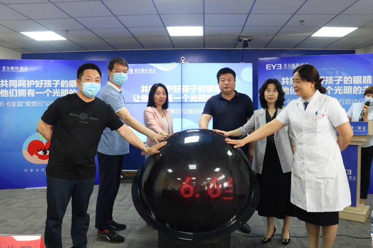 啟動儀式上,保定市衛(wèi)生健康委疾控處縱兆武先生,保定市教育局思政處盧文清女士,保定市科協(xié)學企部張喜平先生、學校代表冀英中學時照義先生、保定愛爾眼科醫(yī)院CEO王欣、視光科主任劉麗麗共同按下啟動球, 正式啟動6·6全國愛眼日公益行活動 。