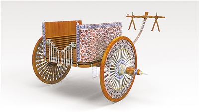 這是馬家塬西戎墓葬出土的一輛戰(zhàn)國馬車的復(fù)原效果圖。