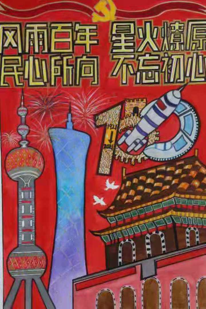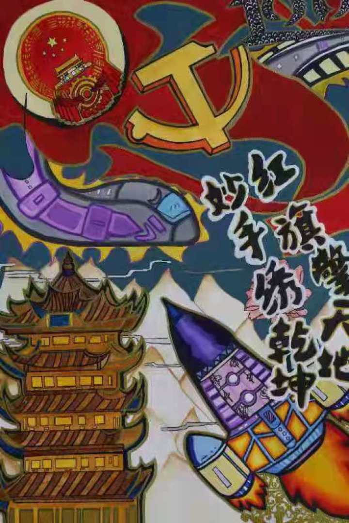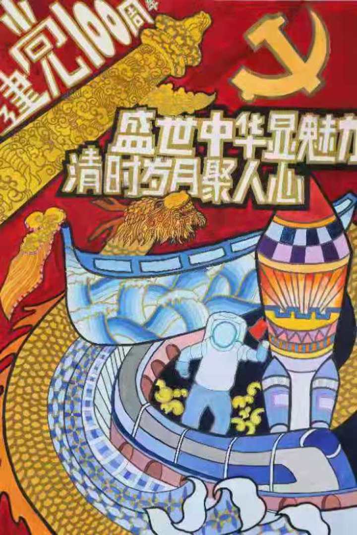 此次展出的藝術作品以葫蘆烙畫和插畫作品為主,作品創作從南湖啟航、井岡搖籃、瑞金紅都、遵義轉折、延安圣地、柏坡趕考、開國屹立、改革開放、夢圓新時代等九個立意主題表現黨的百年輝煌歷程。作品從黨史中尋找創作元素,從標志性人物、建筑、物品等方面入手進行設計創作,既展現了師生對傳統文化的熱愛和繼承,又展現出師生的愛黨愛國情懷。