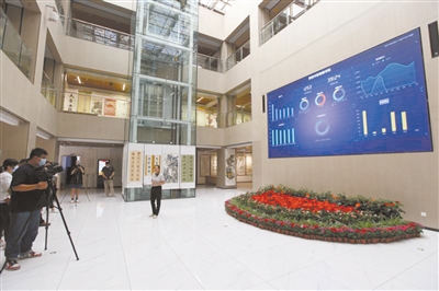市群藝館由群文活動樓和群文蓮語樓兩部分組成。走進蓮語樓一樓,一面長8米,高2.5米的巨型智慧數(shù)據(jù)墻映入眼簾,上面滾動展示國內(nèi)外最新群文動態(tài)、文化信息和群眾文藝作品。樓上還有書畫茶藝教室和一個大型綜合功能廳,此廳以展覽群眾的書畫、攝影作品為主,也可以作為大型群眾活動排練室。