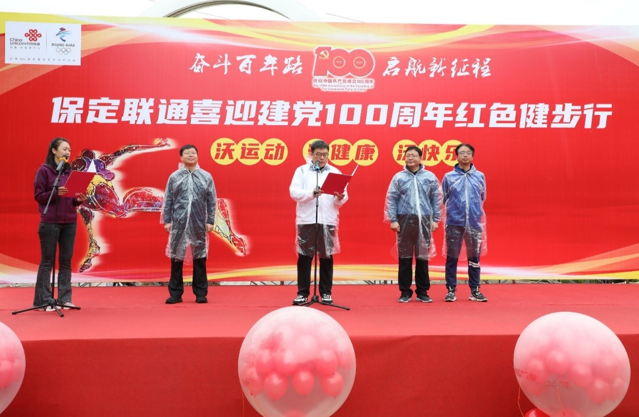 5月16日在順平縣享水溪,中國聯通保定市分公司舉行以“奮斗百年路 啟航新征程”為主題的紅色健步行活動,市分公司領導班子成員、34個分會代表隊,近400名員工參加了活動。