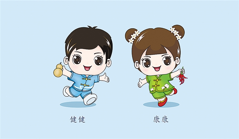 據了解,本屆旅發大會旨在打造中醫藥康養度假、田園品質生活、產業文化體驗、特色購物消費等功能為一體的“中醫藥文化康養體驗區”,吉祥物貼合大會主旨取名為“健健”“康康”。“健健”手拿葫蘆,代表安國“藥都”形象,亦有懸壺濟世之意,衣服上河流紋飾代表蠡縣月孝河域?!翱悼怠币岳婊榘l飾,代表博野縣果木、苗木種植產業,手中紅彤彤的辣椒代表望都縣“辣椒之鄉”稱號,衣服上棉花圖案代表高陽縣“紡織之鄉”榮譽?!敖〗 焙汀翱悼怠鄙泶┲惺椒b,體現武術文化元素,表達對中華優秀傳統文化的傳承弘揚;服飾顏色為藍色、綠色,寓意良好生態環境。金秋9月,讓我們跟隨“健健”“康康”的腳步,共同見證一場品質、活力、精彩的旅發盛會,領略文化名城、山水保定的嶄新魅力。