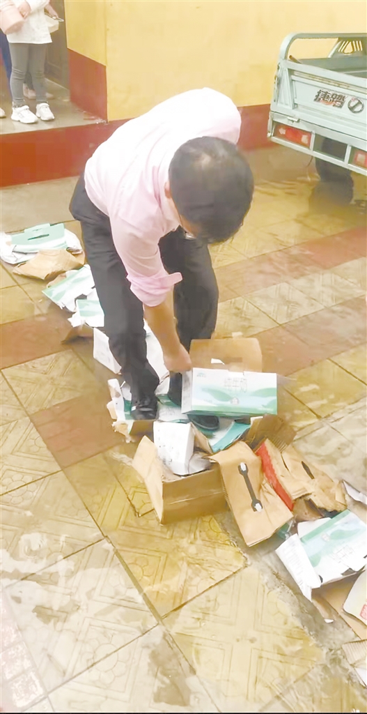 為了讓學生們不濕鞋,陳文水只能將紙箱墊厚一些。