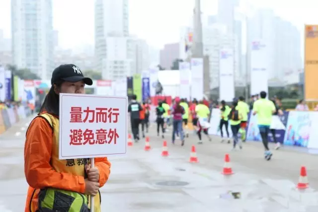 5、注意安全,量力而行:參賽選手們在比賽中出疲勞“信號”時,要立即減速,或尋求工作人員和醫護人員的幫助,等身體恢復舒適后,再適當加速。初跑者參加馬拉松,發生運動損傷和意外的幾率較高。跑馬者如果在賽前沒有充分做好熱身,或鞋子不合腳,都會導致關節韌帶肌肉損傷。另外,作為馬拉松“老炮”,想突破自己無可厚非,但切不可盲目挑戰。在跑步過程中,如果出現胸悶、胸痛、氣促等“信號”時,要及時停下來尋求專業醫生的幫助。