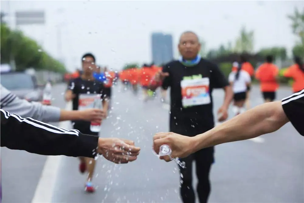 1、即使感覺不渴,在水站也要少量喝一點水。因為水進入體內需要30多分鐘的吸收,當感覺到口渴時再喝已經晚了。而且喝水盡量養成跑動中喝,因為后程一旦停下來喝水,跑步的機械性沒了,節奏也亂了,很難再跑起來。