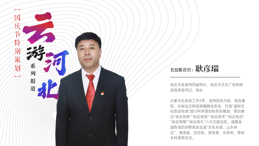 今天,請跟隨我們這一期的美景推薦官——保定市文化廣電和旅游局黨組書記、局長耿彥瑞的腳步,一起“云”游保定,感受古城的深厚底蘊吧!