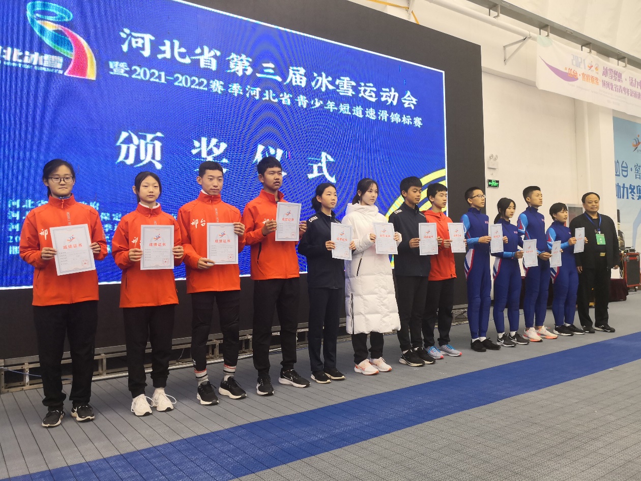 經(jīng)過三天冰場上的激烈爭先,青少年短道速滑錦標賽15日下午圓滿結(jié)束。作為冰雪運動會的開賽的第一大項,這項賽事還“肩挑”2021-2022賽季河北省青少年短道速滑錦標賽,來自河北省12個地市157名運動員加入戰(zhàn)團。在U10、U12、U14、U16四個組別,26個小項的競爭中,保定市共獲得12金5銀2銅,邯鄲、滄州、承德各獲得4枚金牌,邢臺獲2枚金牌。