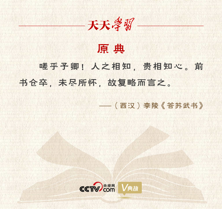 信中李陵為自己當(dāng)年投降匈奴的行為進行辯白,并對蘇武發(fā)出了“人之相知,貴相知心”的慨嘆,認為人與人之間的相互理解,最可貴的是彼此心靈相通。